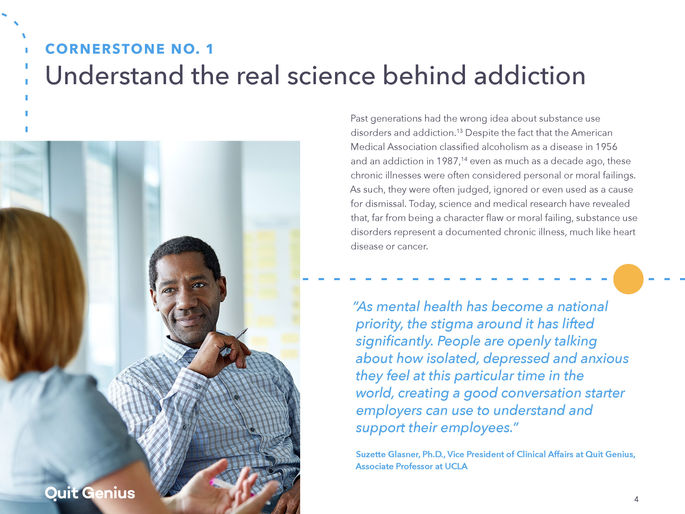 Quit Genius had little to no branding, so I developed a distinctive visual theme for their pitch deck to ensure the presentation was engaging. I incorporated dotted lines and solid shapes on each page as directional elements to guide the audience's focus. I also hand-selected the images and created custom iconography to complement the content and enhance the overall design.
